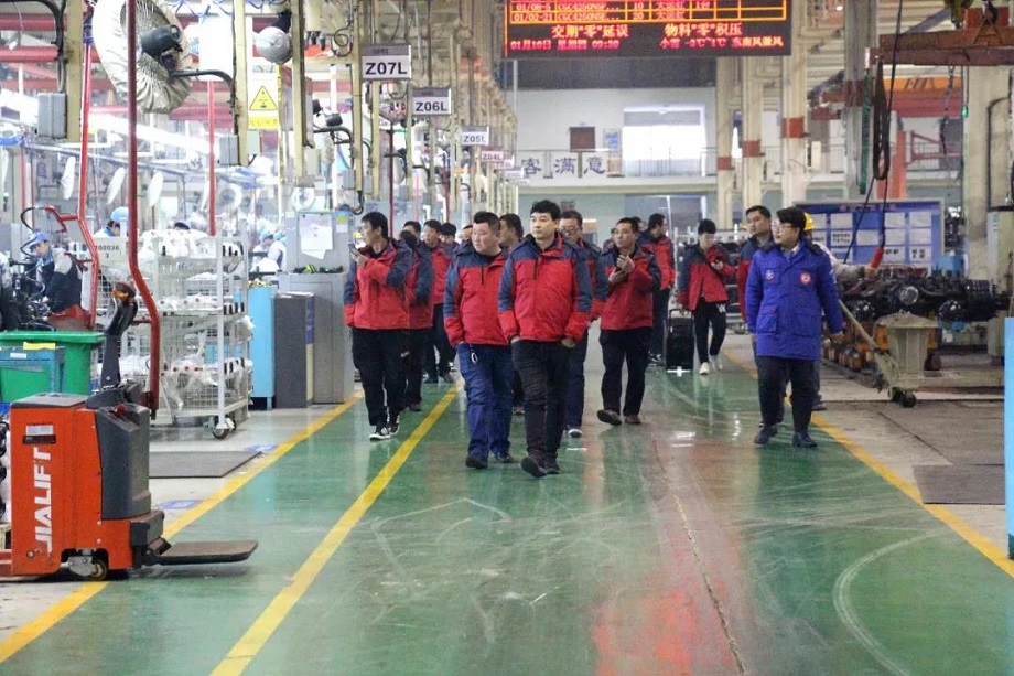 來自陜北區域的經銷商朋友首先參觀了大運重卡生產基地、大運新能源生產基地,其次乘坐大巴來到大運機車有限公司,并對公司的沖焊車間、涂裝車間以及總裝車間進行了參觀考察。