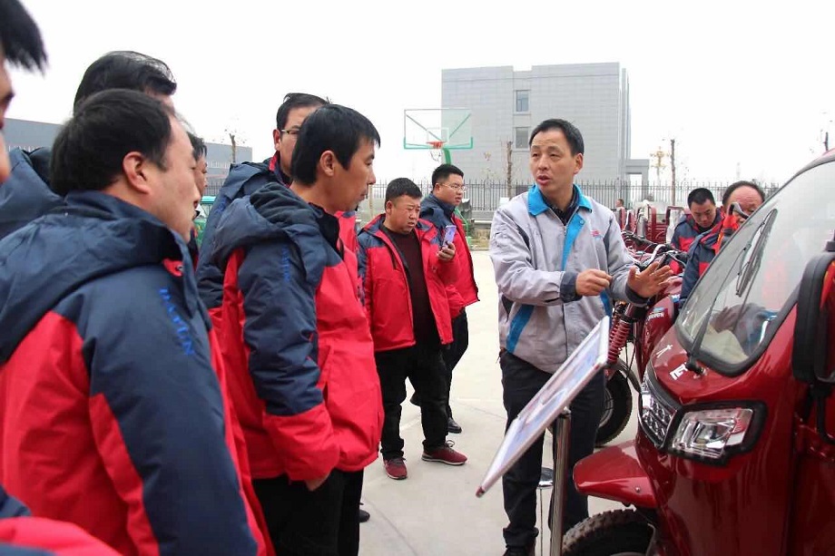 隨后,各經銷商朋在公司二樓會議室共同參與了“大運三輪陜北區域商務會議”。會議首先,運城大運機車有限公司總經理周總分別從公司大平臺的綜合實力、2019年對銷售市場的保障措施以及對陜北區域的重視程度等方面向與會商家做了講解,同時周總對陜西創天商貿有限公司“早規劃、早布局、早行動”的工作思路表示認可和支持。其次,技術中心油車研發處經理張現偉、電車研發處經理符朝輝分別向與會商家講解了公司2019年的產品規劃及車輛公告情況,并表示,2019年將為市場提供符合國家公告的、具有市場競爭力的產品。